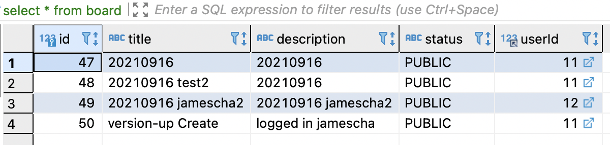 when we use "board.userId" in the where clauses above, we did not make the column in the Board Entity.