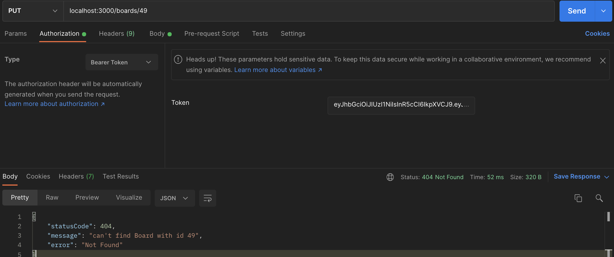 - It looks weired because the result of request, which is not owned board id, is 404 Status code.